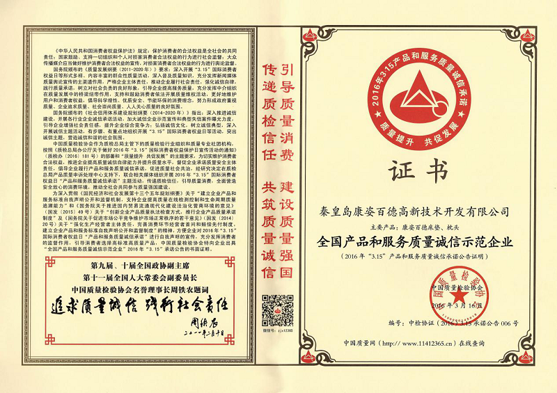此外,球盟会(中国)还分别荣获3.15主题活动中“全国产品和服务质量诚信示范企业”、“全国质量检验稳定合格产品”两项荣誉。