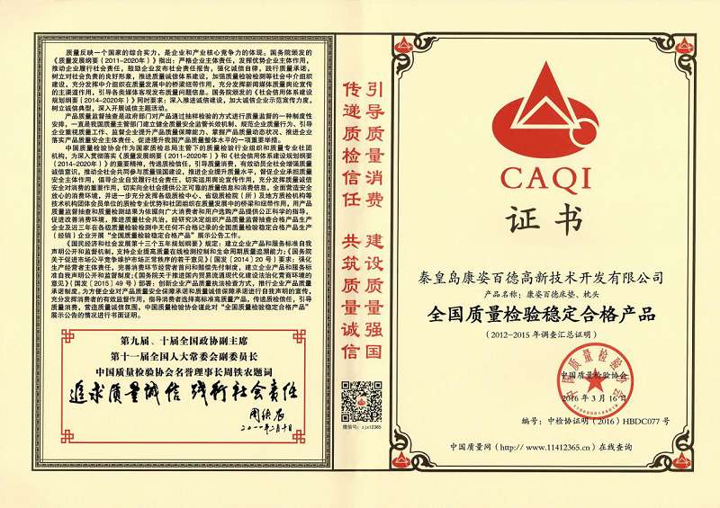 “全国质量检验稳定合格产品”证书