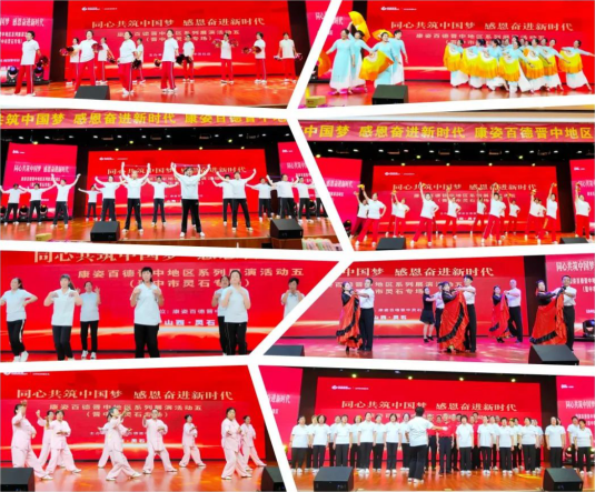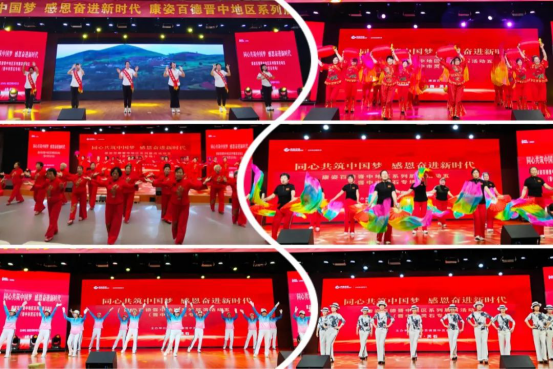 本次展演内容有太极扇、腰鼓、交谊舞、秧歌、健身操等体育项目,丰富多样的演出形式、动感有力的节目呈现、精心编排的韵律动作,充分展示了晋中灵石人民的独特魅力和昂扬向上的精神风貌。一支支歌颂祖国、歌颂党的歌曲伴着优美的舞蹈轮番上演,为居民群众带来了一场精彩纷呈的文艺大餐。