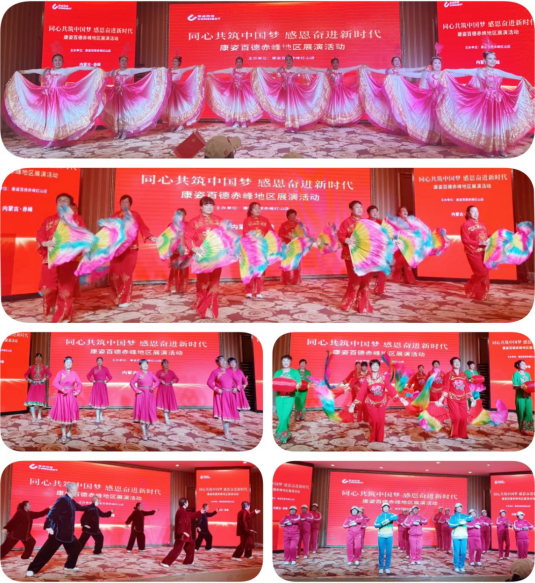 展演活动在《欢聚一堂》中拉开序幕,广场舞、旗袍走秀、扇子舞等节目轮番上阵、异彩纷呈,文体爱好者们将健身项目与舞蹈表演充分结合,既有很强的时代性、健身性,又有很好的观赏性。他们精神饱满,动作标准、规范,队列整齐有序,充分展示了内蒙古赤峰人民的独特魅力和昂扬向上的精神风貌。