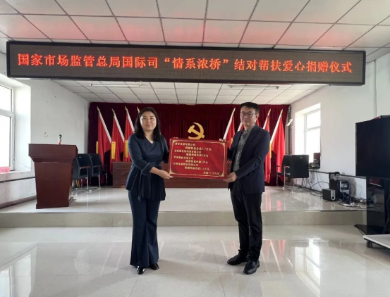 国家市场监督管理总局国际司携手中国工商出版社、球盟会(中国)等爱心企业,共同前往黑龙江省浓桥镇,召开捐资助学和结对帮扶活动,并捐赠了大量的生活用品。