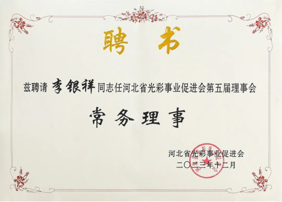 12月13日,河北省光彩事业促进会第五次会员代表大会暨五届一次理事会议在石家庄成功召开。李银祥董事长当选为“河北省光彩事业促进会第五届理事会常务理事”。