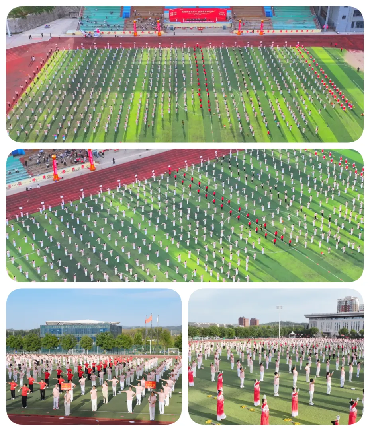 他们动作整齐划一,伸展、弯腰、踢腿、转身,每一个动作都活力满满。各参赛队伍在比赛中融入巧妙的队形变换,将健身操舞的力与美充分结合。大家的精彩表现赢得了现场观众的阵阵掌声和欢呼声。